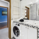 W oknach zamontowano praktyczne, dwuwarstwowe rolety rzymskie (firana + zasłona). Mieszkanie wyposażone jest w sprzęt AGD (zmywarka, lodówka, piekarnik, płyta indukcyjna, okap, pralka).