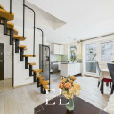 • Dwupoziomowy układ z wyraźnym podziałem na strefę dzienną i prywatną,