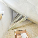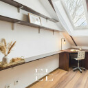 Otwarta przestrzeń magazynowa nad drugim poziomem, wejście po rozkładanych schodkach - idealne miejsce na przechowywanie rzeczy, których nie chcemy trzymać w szafach.