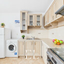 oddzielna, widna kuchnia z oknem oraz drugą rozkładaną kanapą
