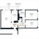 Wschodnia ekspozycja sprawia, że mieszkanie jest jasne i przyjemnie nasłonecznione od godzin porannych. Układ pomieszczeń należy do najbardziej poszukiwanych — wyraźny podział na strefę dzienną i prywatną zapewnia komfort zarówno rodzinie, jak i osobom pracującym zdalnie.
