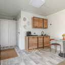 Domek składa się z salonu z aneksem kuchennym, sypialni łazienka.